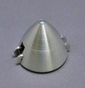| 折ペラ用アルミスピンナー、グラウプナー系2ミリ6ミリブレードに対応。スピンナー形状はホットライナー対応の砲弾型。スピンナーコーン部分は2分割でセンターボルトで固定する方式になっている。またスピンナーベースがブレードピンのストッパーになる合理的な方式をとっている。 |