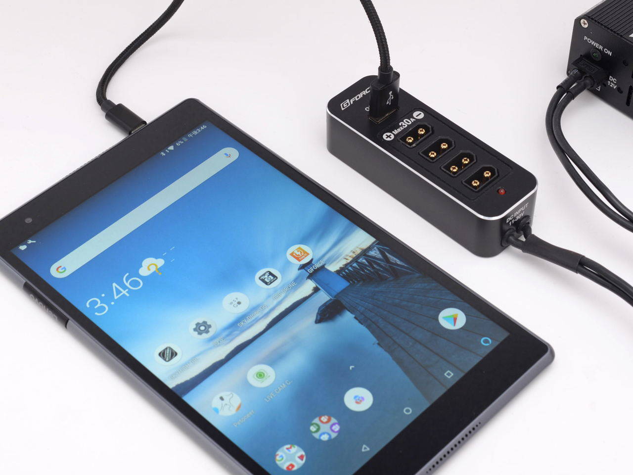 最大30V/30Aの高電圧・大電流に対応! XT60出力4基&USB(QC3.0)搭載DC分配器。> |