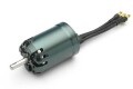ローターが中に入っているインナーローター形式の様に見えますが、実はこれがアウターローター形式のブラシレスモーターで、一番外側に見えるケースは回転しません。 フロントケースで機体に取り付ける形式でありながらリード線は後ろから出ています。 飛行機の胴体の中でアウターローターがむき出しで回転しませんので配線や他のメカの配置を気にしなくても良くなります。 |