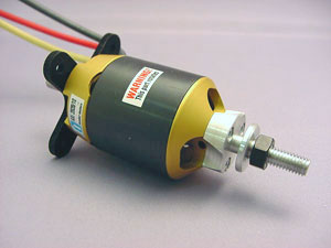 AXI2820/XXシリーズおよび2826/XXシリーズ対応の専用ラジアルマウントです。取り付けはまずこの十字型マウントをシャフトの出ているフロント側に4本のビスで取り付け、外ケースの反対側のお尻に3本のキャップスクリュウでプロペラシャフトを固定します。これで終りです。十字型のマウントを防火壁に取り付けることになりますので,モーターの搭載が楽になると思います。