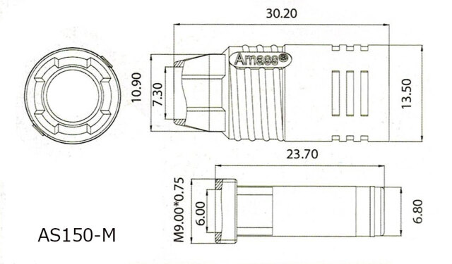 ●接続後のハウジング外寸:13.5mm径x49mm長