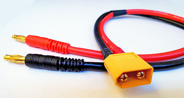 ●バッテリーのXT60コネクター(メス)と充電器の4mmバナナプラグを接続するためのケーブル。