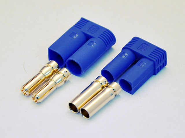●内径の大きいハウジングに付属5mmのオスゴールドコネクター、内径の小さいハウジングに付属5mmメスゴールドコネクターを装着します。 ●まずケーブルをゴールドコネクターにハンダ付けし、はんだ付けしたコネクターをハウジングに後ろから差し込み、先の細いドライバーを使って押し込みます。手では力が足りませんので、そのドライバーをハンマーやペンチの頭で、ガチッと中で固定されるまで叩きます。 ●若干力が必要になりますがコツを覚えると意外に簡単にできるようになります。 ただ半田がはみ出てしまうと叩き込みが困難になりますのではんだ付けは注意が必要です。 ●なおバッテリーケーブルへのはんだ付けは、かならず片側づつ行って、絶対にショートしないように注意してください。