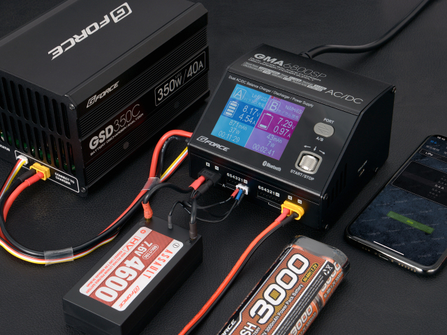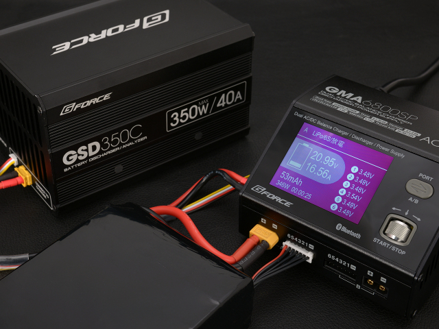 最大40A(350W)の超大電流放電が可能! 別売のGSD350C(G0402)を使用することで、空前絶後の大電流40A(350W)放電が可能に。マルチセルバッテリーのストレージ放電からレース用バッテリーの活性化まで、あらゆるバッテリーのコンディショニングをスピーディに。 ※GSD350C Dicsharger(G0402)は別売りです。 ※設定値はバッテリーの説明書に従ってください。 |