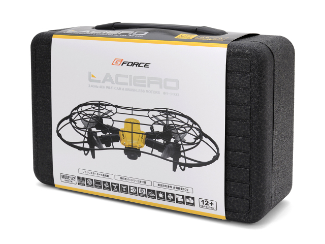 | 同梱物 | ![]() LACIERO本体 2.4GHz 4ch送信機 飛行用Li-Poバッテリー ×2 プロペラガード(トップ) プロペラガード(アンダー) 予備プロペラ ×4セット USB充電ケーブル 工具 取扱説明書 |