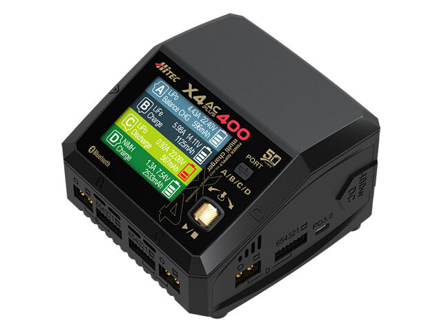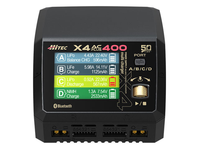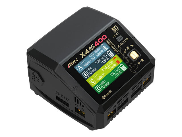 製品特徴 今までの4ポート充電器よりさらに小さく・高性能! 最大充電 DC:400W、 AC:200W ●DC電源で最大400W(100W × 4)、 AC電源では最大200W(50W × 4)のハイパワー充電 1ポート・2ポートのみの使用で AC入力でも最大100W充電が可能! 電力自動振り分け機能搭載! ●使用するポート数に適した電力を 自動で振り分けて充電を行います。 [ AC入力時 ] 1ポート使用時 : 最大100W 2ポート使用時 : 100W×2 3ポート使用時 : 66W×3 4ポート使用時 : 50W×4 [ DC入力時 ] 1~4ポート : 最大100W×4 合計 400W ※USB Type-Cをご使用(最大20W)の際は 他のポート電力供給は少なくなります。 arm® Cortex®-M4 MCU搭載 ●超高速演算処理(DSP)機能を備えているため、高出力に最適 PC接続しソフトウェアでのバッテリー性能を分析 ●放電グラフや充電グラフが視覚的に表示できバッテリーの特性がパソコン画面で解析可能 スマートフォン用アプリでも操作が可能 ●Bluetoothを内蔵しておりスマートフォンのアプリ「Hitec LinkPower X JPN Ver」での操作が可能 USB Type-C PD/QC3.0出力対応 ●最大20WのPD/QC3.0出力でモバイル機器の充電ができます Hitec 50周年記念モデル ●ハイテック創業50周年を記念し、新製品「X4 AC PLUS 400」にハイテック50周年記念モデルも同時発売! ゴールドをアクセントカラーにしたデザインで高級感あふれるモデルになっています ●50周年モデルには金・銀・白・ホログラム(レインボー・クリスタル)の特別仕様のシール中から1枚付き! ※ランダムに同梱のためシールは選べません。 |