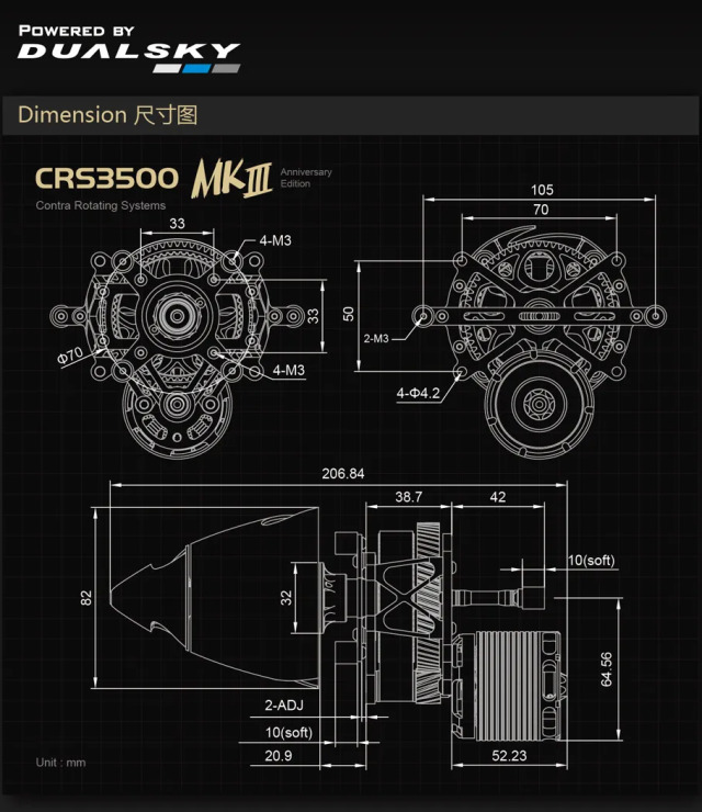 デュアルスカイ Dualsky CRS3500 MKIII AE 550KV, Max 3515W @37V (10S Lipo) for FAI F3A 52314
