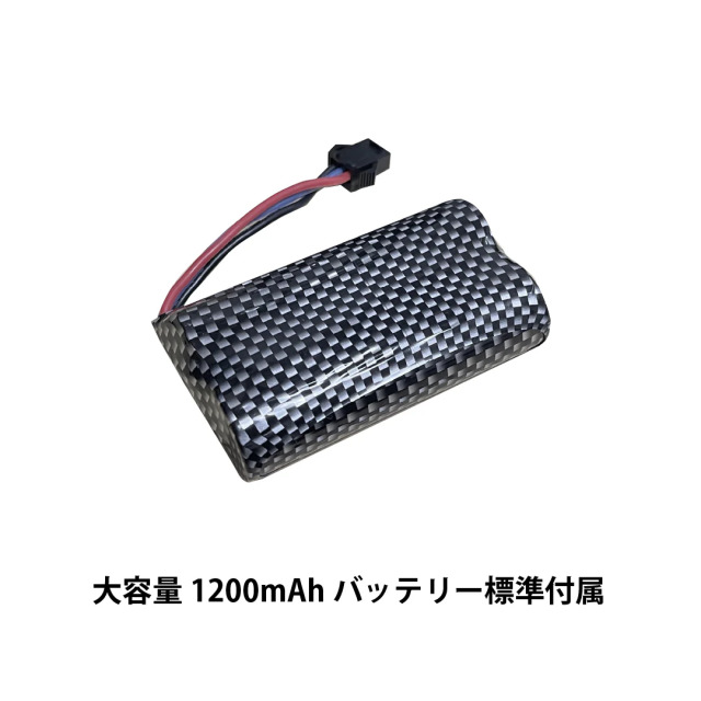 長時間の冒険を支える大容量1200mAhバッテリーを付属! 走行用バッテリーは大容量1200mAhバッテリーが標準で付属、一度の充電で長時間の走行が可能。また大容量バッテリーの恩恵で安定したトルクを発揮します。 険しいオフロード走行を安心して存分に楽しむことができます。 |